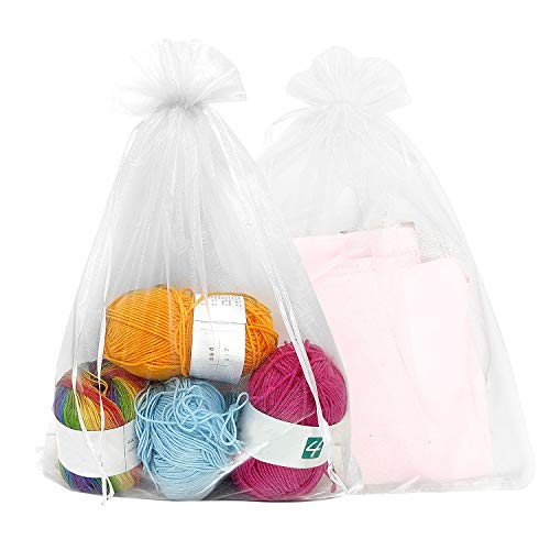 ✔ SumDirect 100Pcs12x16 Inches Extra Large White Organza Gift Bags with Drawstring